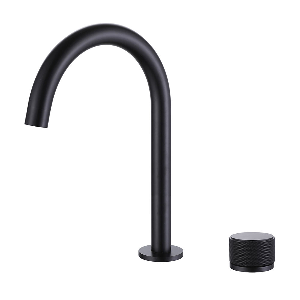 2 Hole Hot Cold Water Bathroom Basin Tap Deck Mounted Single Handle Matt Black Finish Brass Hand Wash Sink Faucet