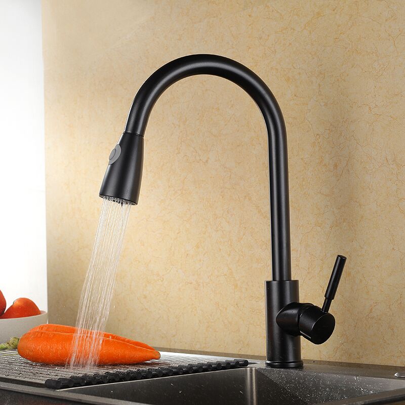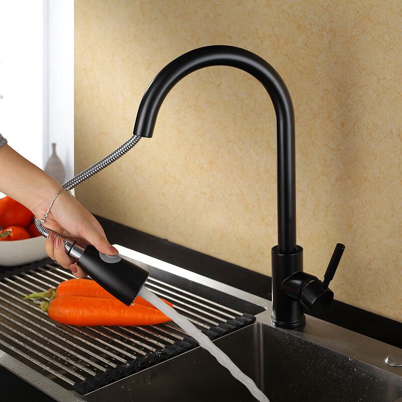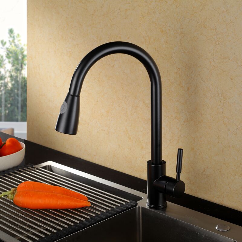 - The pull-out kitchen faucet design with flexible hose makes your kitchen room simple and fresh, easy to match with most sinks.