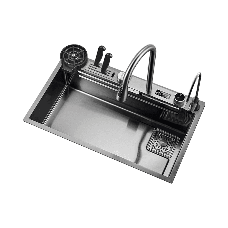 304 Stainless Steel Kitchen Sink Set Double Bowl Square Counter Waterfall Multifunction Knife Holder