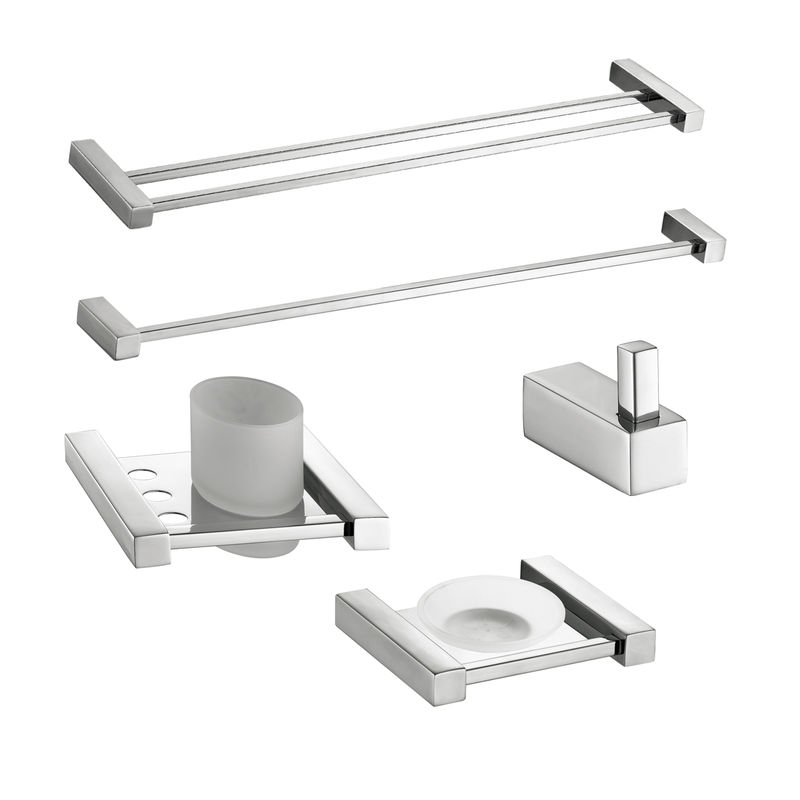 5 Pieces 304 Stainless Steel Bath Shower Bathroom Hardware Accessories Set Kit Wall Mounted Single Hook Towel Bar Paper Holder