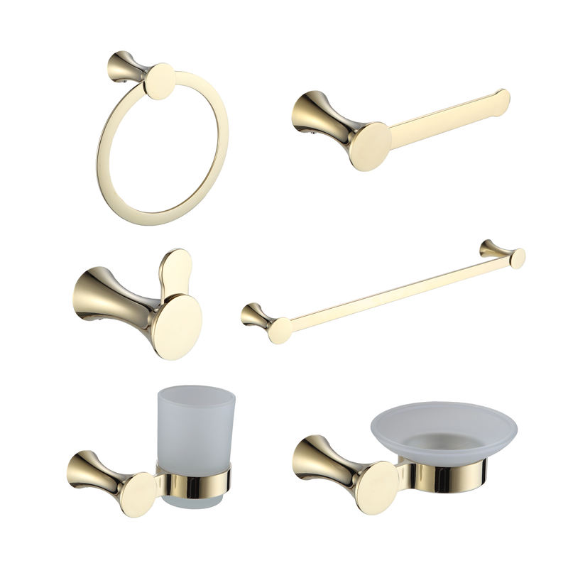6 Piece Gold Towel bar Set Zinc Alloy Wall Mounted Modern Bathroom Hardware Accessories Set
