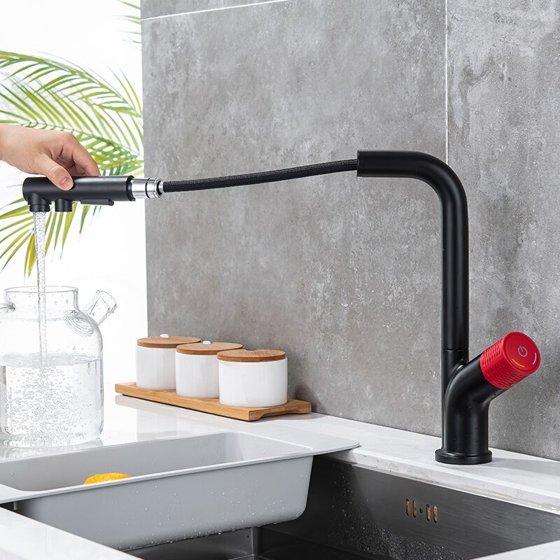 - Pull-down kitchen faucet: 360-degree rotating pull-out spout, longer hose extends beyond the sink, which greatly facilitates washing. Allows you to control the water with one hand and reach out to the sink to complete other kitchen tasks.