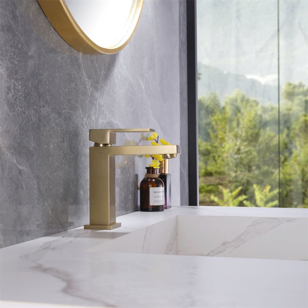 Aqua Gallery Deck Mounted Single Hole Hot Cold Water Supply Brushed Gold Finish Brass Single Handle Basin Tap