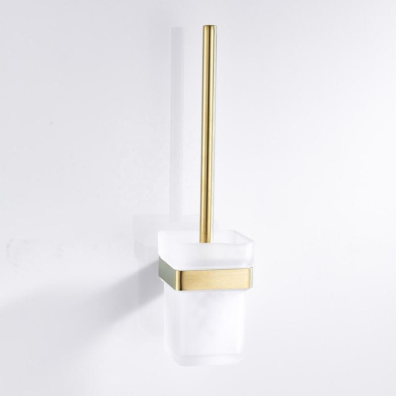 Bathroom Accessories Metal Toilet Brush With Holder Stand Wall Mounted Brushed Golden Bathroom Cleaning Brush