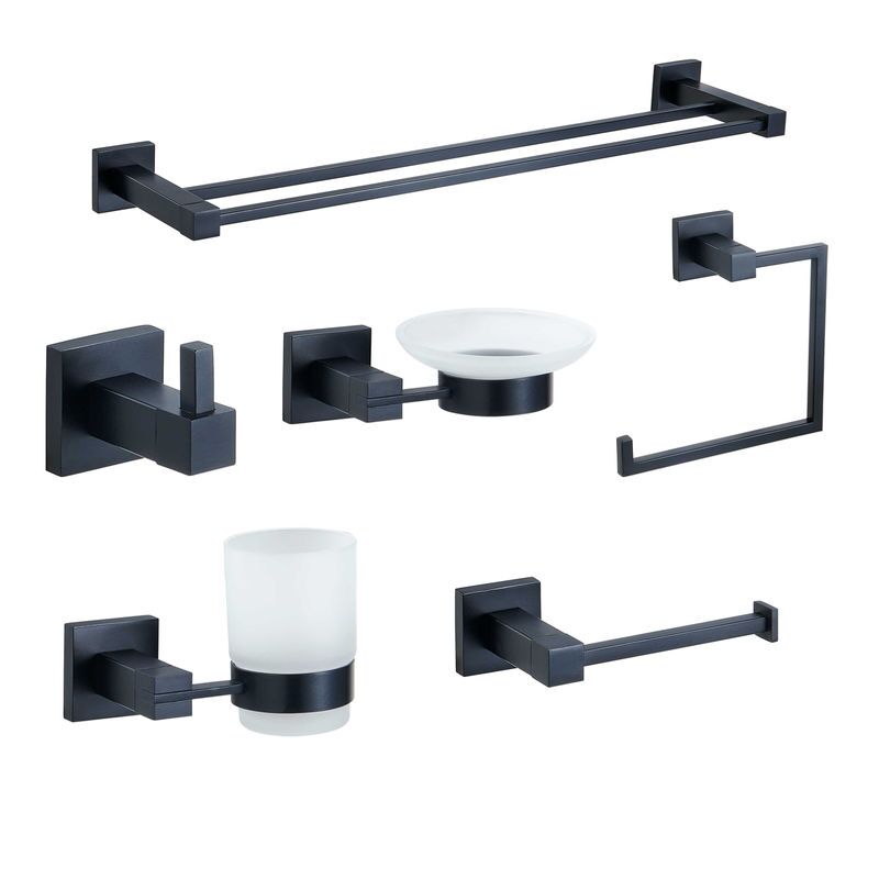 Black Series Hotel Project Bathroom Factory Modern Sanitary Fittings Bathroom Toilet Paper Holder Towel Rack Accessories Set
