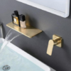 Brushed Gold Basin Faucets Wall Mounted Brass Basin Faucet Mixer Tap 3 Hole Bathroom Sink Faucet