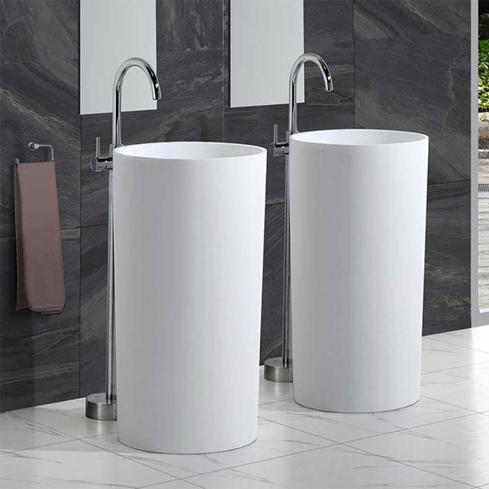 Chrome Finished Floor Mounted Single Handle Brass Hot and Cold Pedestal Basin Faucet