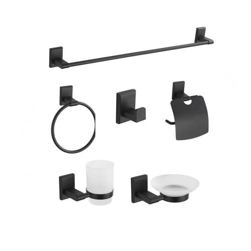 Commercial Black Wall Mounted Square 6 Pieces Bathroom Accessories Set for Hotel