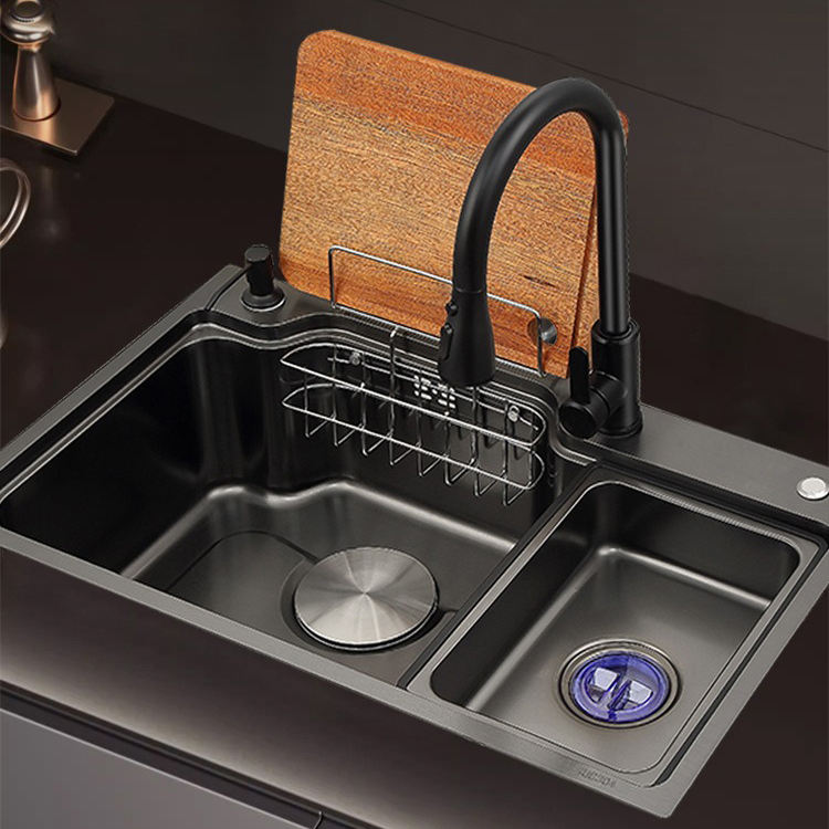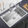 Custom Made Stainless Steel Kitchen Sink Drain Board Square Basin Sponge Holder Handmade Nano