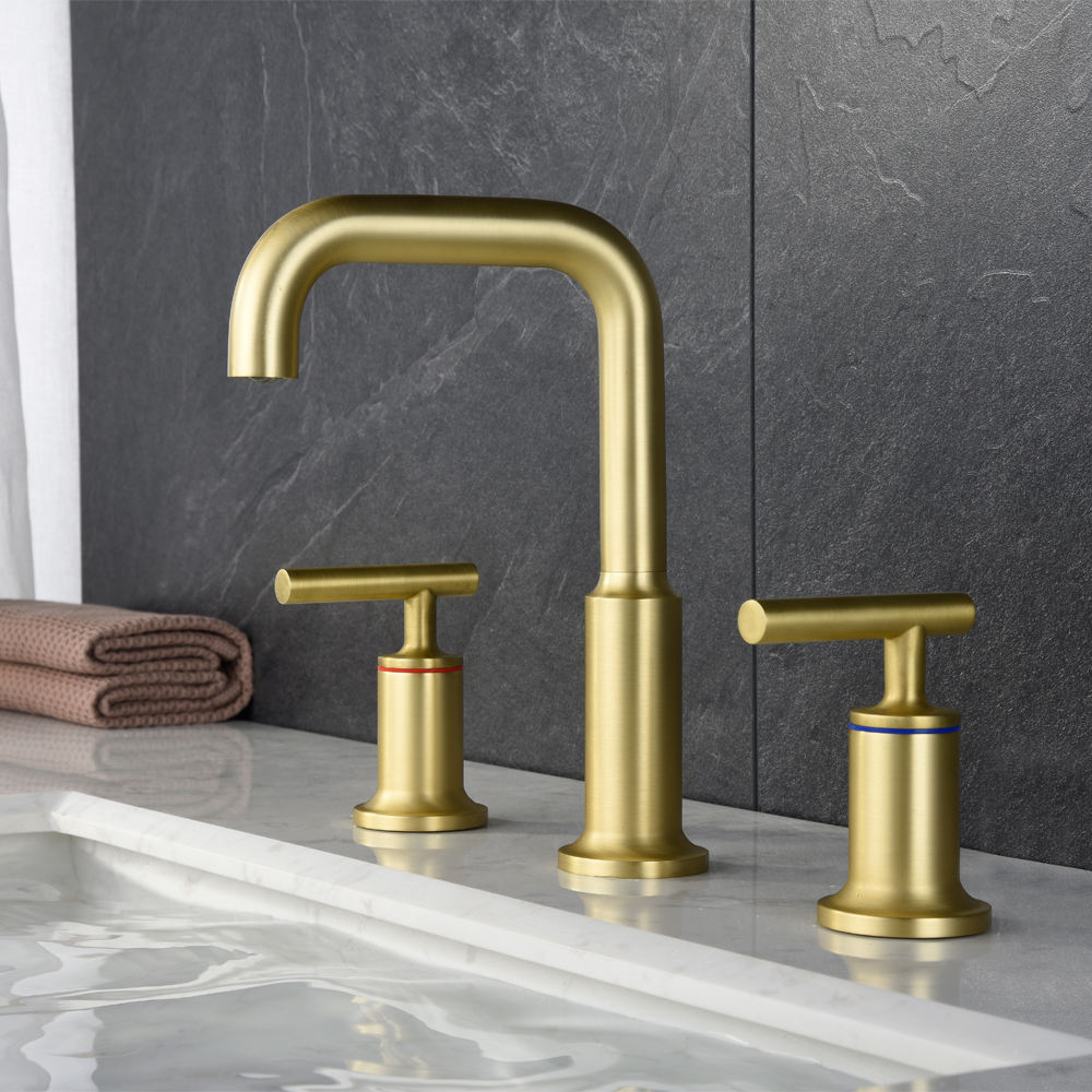 Deck Mounted 3 Hole Dual Handle Brushed Gold Basin Mixer Hot Sale
