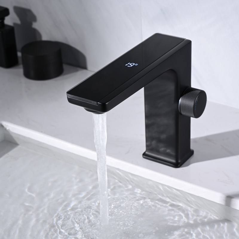 Deck Mounted Led Digital Wash Basin Faucet Matt Black Water Mixer Tap Brass Bathroom Basin Faucet