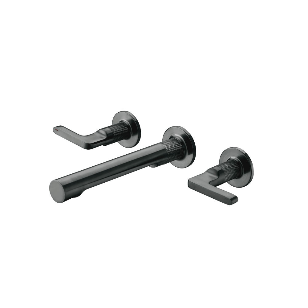 Dual Handle Gun Black Finished Basin Mixer Tap Wall Mounted Brass Wash Water Basin Faucet