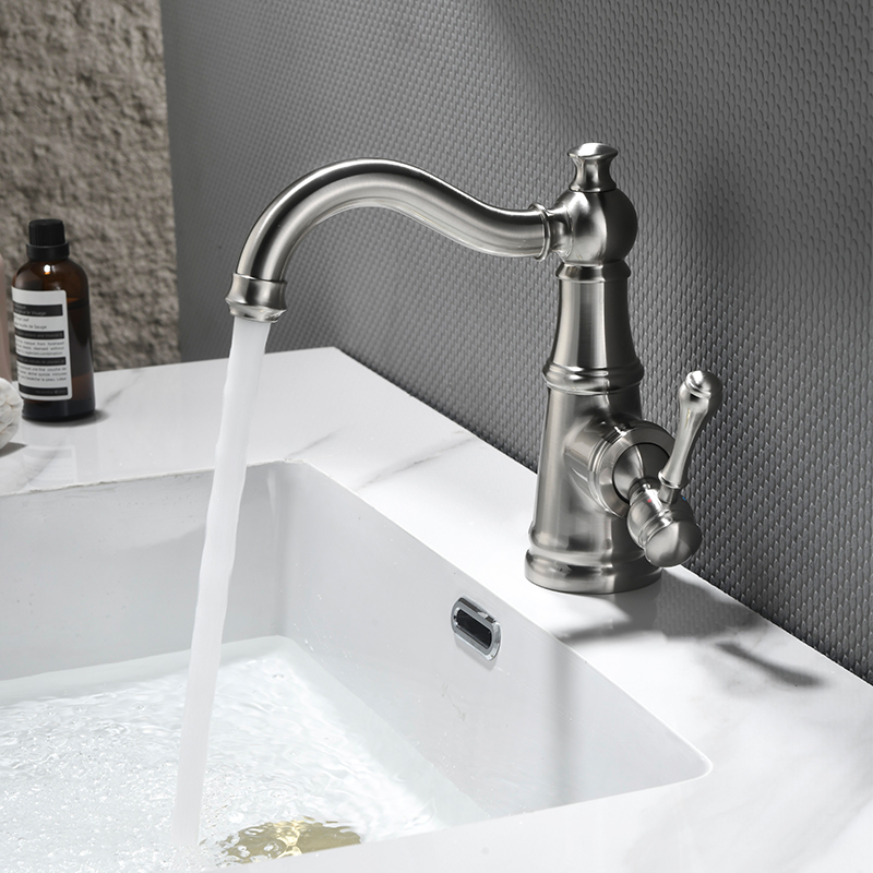 European Style Bathroom Sink Faucet Single Handle Brass Basin Mixer Faucet Brushed Nickel Lavatory Vanity Faucet