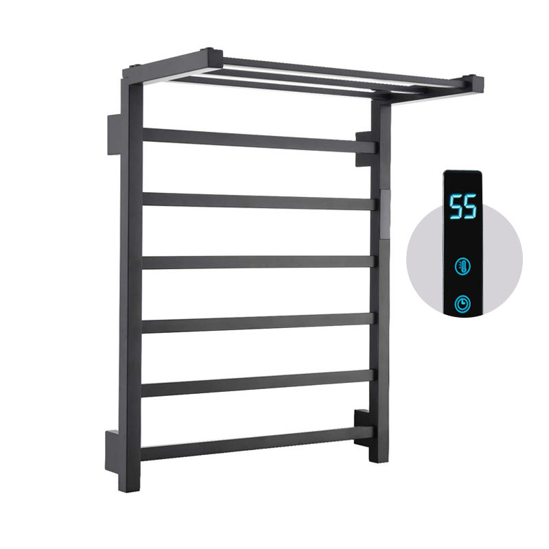 Factory Price 6 Bars Wall Mount Waterproof Electric Heated Towel Warmer Rail Holder Towel Warmer Heater With Shelf