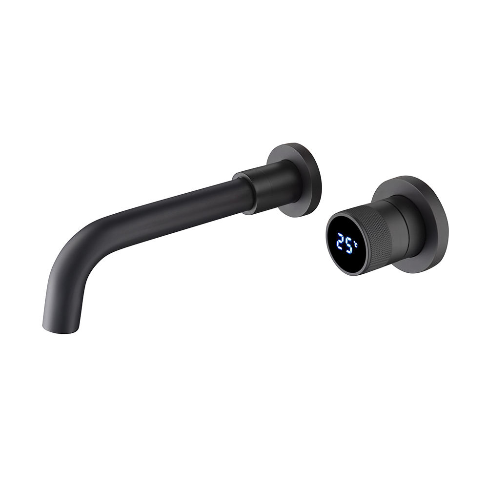 Factory Supply Luxury Home Round Basin Mixer Wall Mounted Bathroom Sink Faucet Temperature Display Brass Tap