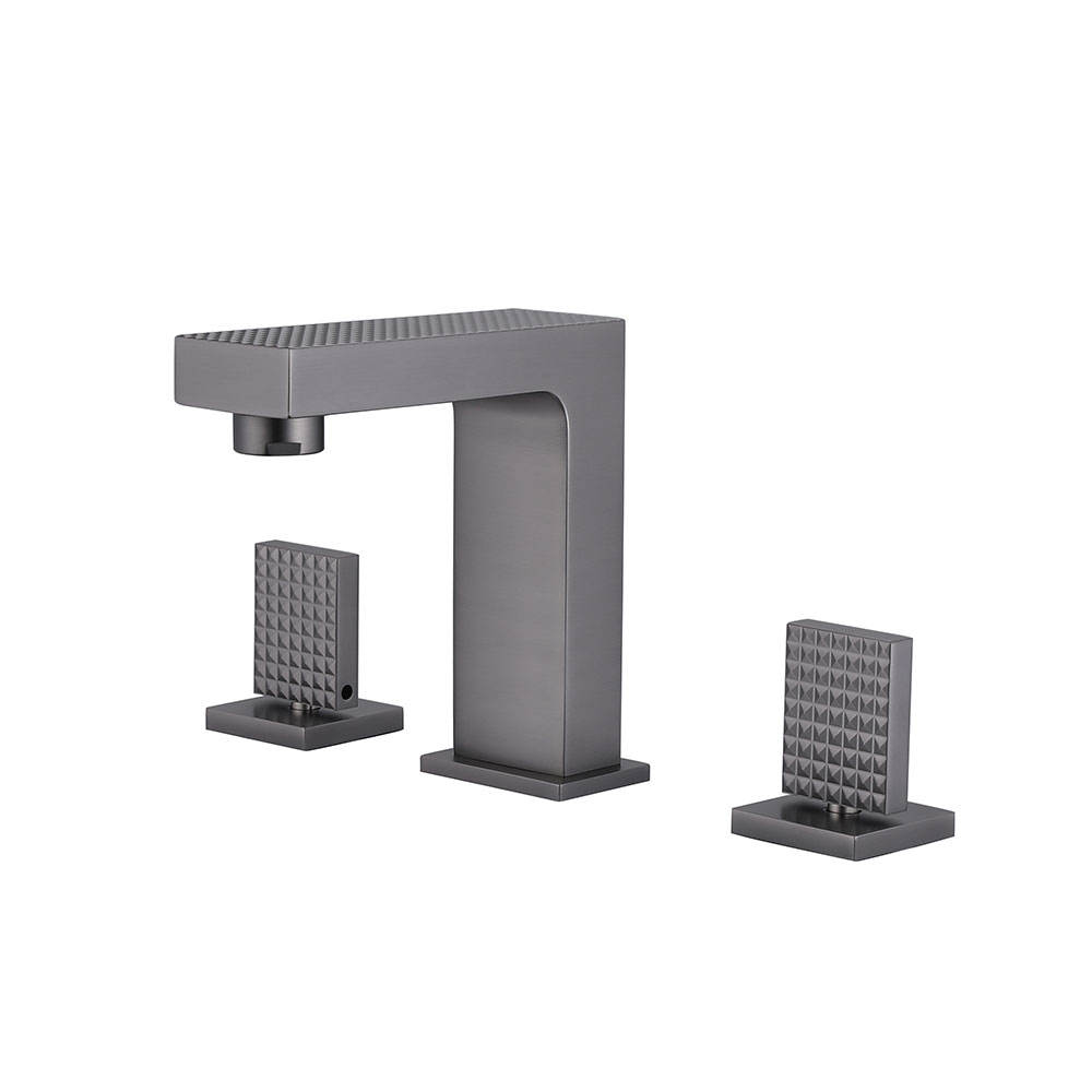 Gun Metal Finished Solid Brass Double Handle Deck Mounted Faucet with Pattern Hot and Cold Basin Mixer Tap