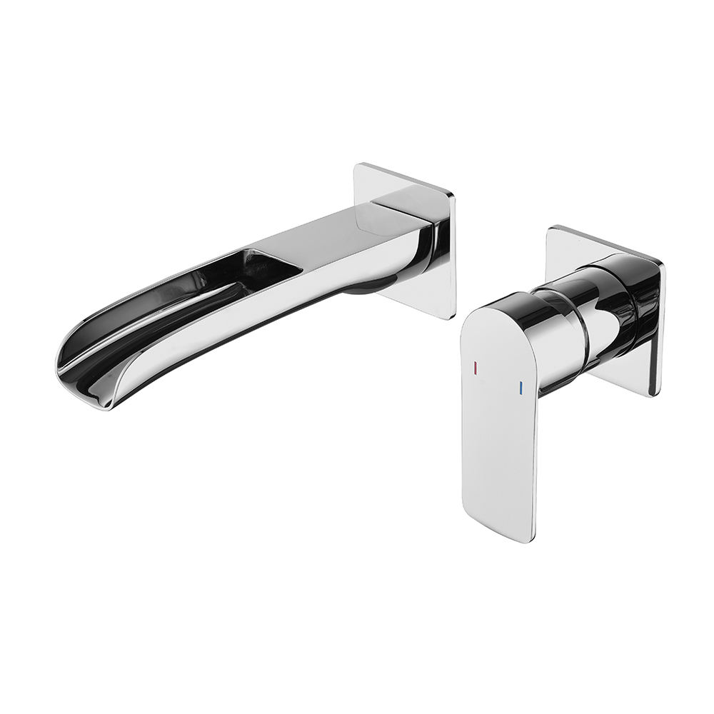 Kaiping Manufacturer Chrome Finish Bathroom Single Handle Wall Mounted Basin Faucet Waterfall Sink Faucet