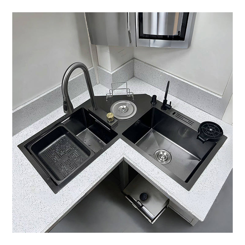 Kitchen Sink Corner Vegetable Wash Basin Black Nano Multi Functional Sink Double Sink