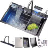 Kitchen Sink Nano Utility Double Bottom Square Bowl Smart Multifunction Undermount