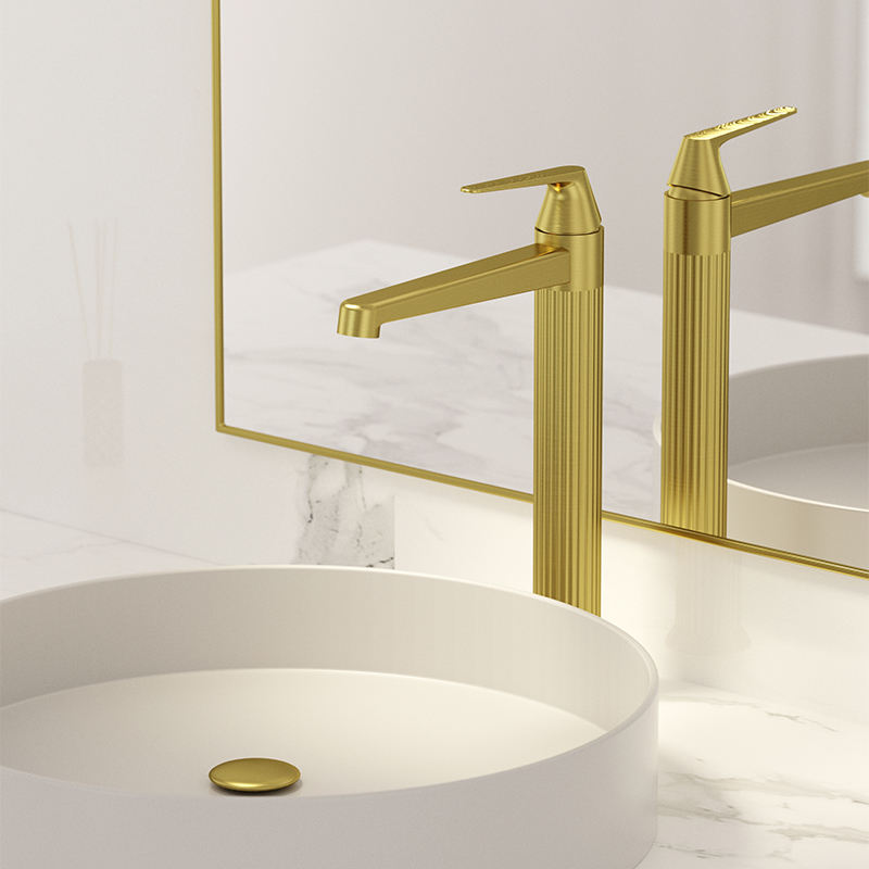Luxury Basin Mixer Faucet Deck Mounted Brass Lavatory Vanity Faucet Single Handle Brushed Gold Taps for Bathroom