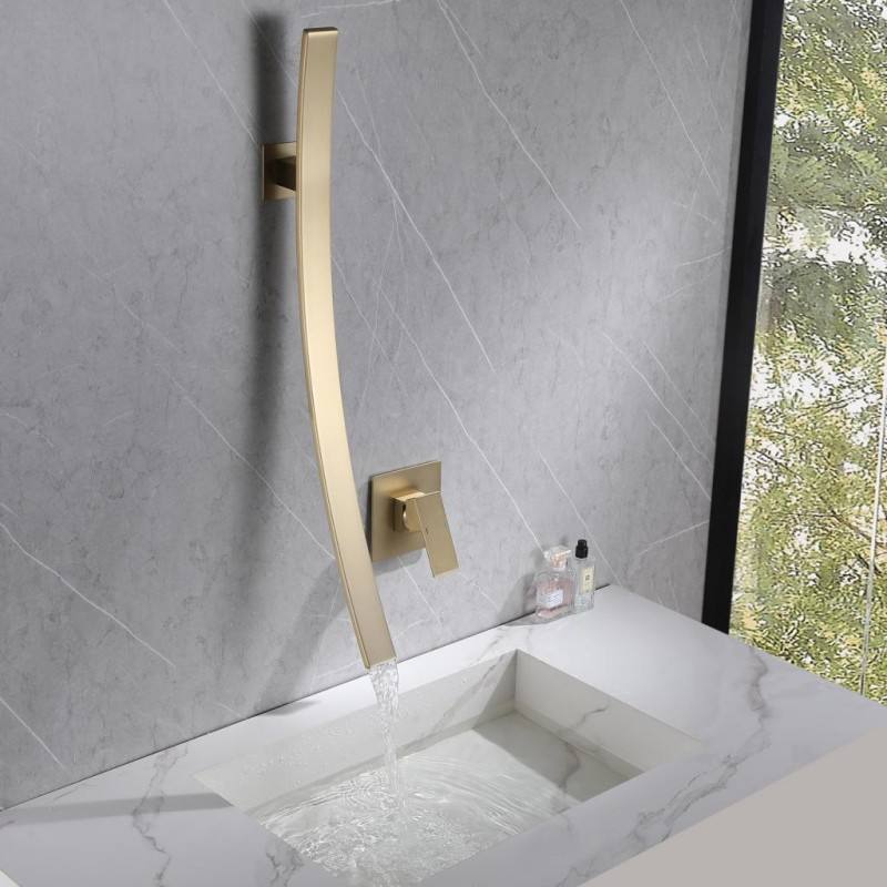 Luxury Bathroom Faucet Brushed Gold Sink Mixer Water Tap Copper Single Handle Waterfall Wash Basin Faucet