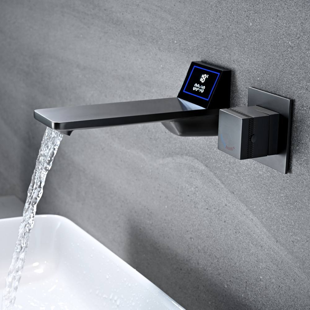Luxury Bathroom Sink Faucet LED Digital Waterfall Brass Basin Mixer Faucet Wall Mounted Lavatory Vanity Faucet
