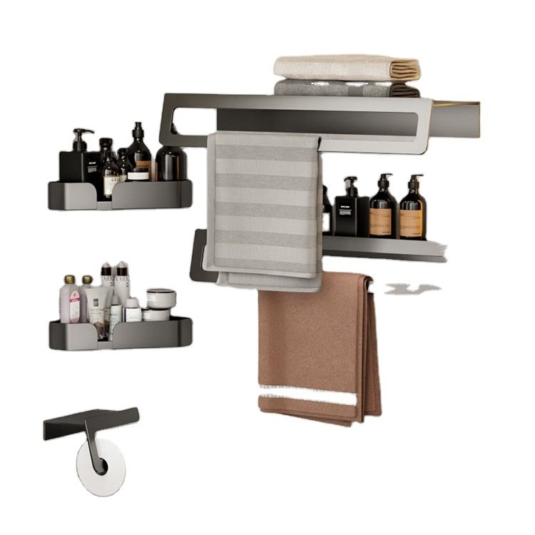 Luxury Bathroom Towel Bar Accessory Set Flat Storage Towel Rack Quality Aluminum Wall Mounted Bathroom Accessories Set