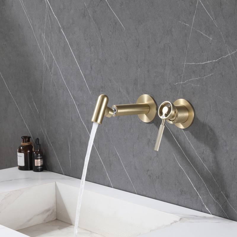 Luxury Wall Mounted Basin Faucet Brushed Gold Brass Vanity Faucet Swivel Single Handle Bathroom Sink Faucet
