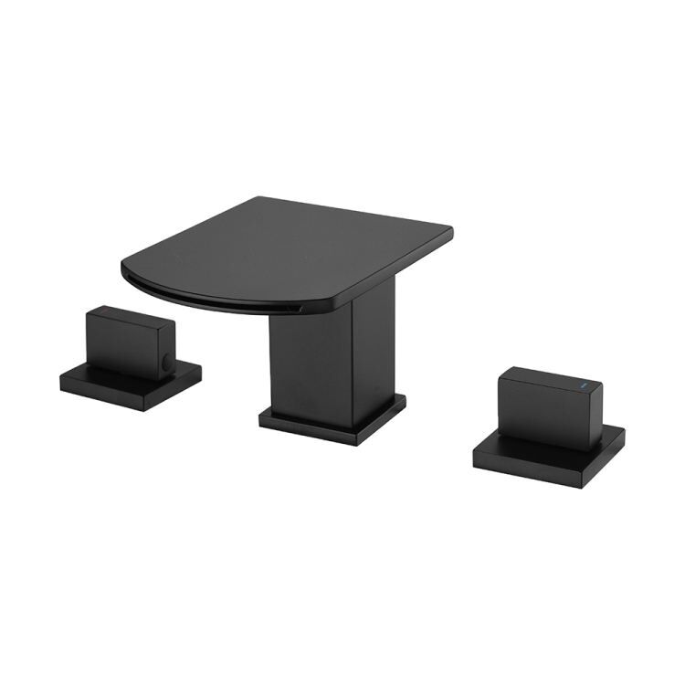 Matt Black Square Brass Tap Bathroom Mixer Dual Handle Thermostatic Faucet Single Hole Waterfall Water Saving Design Sink Tap