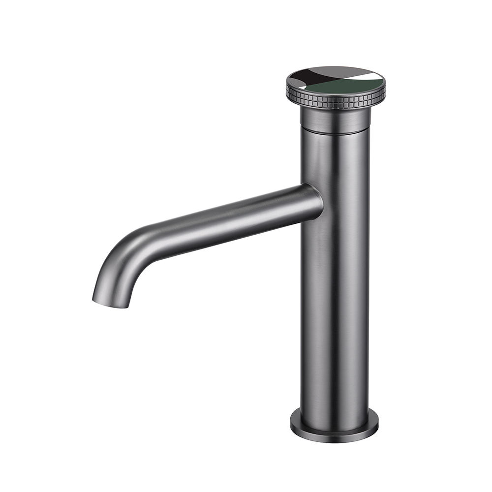 Modenr Design Hot Cold Water Basin Mixer Tap Gun Metal Finish Deck Mounted Single Knob Brass Bathroom Washroom Sink Faucet