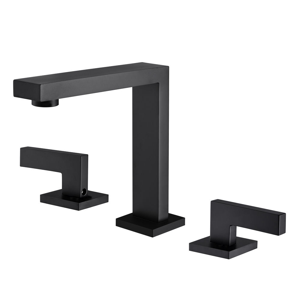 Modern 3 Hole Deck Mounted Dual HandleBathroom Tap Matt Black Finished Brass 8” Widespread Bathroom Vanity Wash Basin Faucet