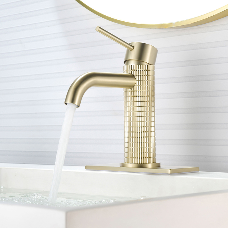 Modern Basin Mixer Faucet Deck Mounted Knurled Brass Wash Basin Faucet Brushed Gold Single Hole Bathroom Sink Faucet