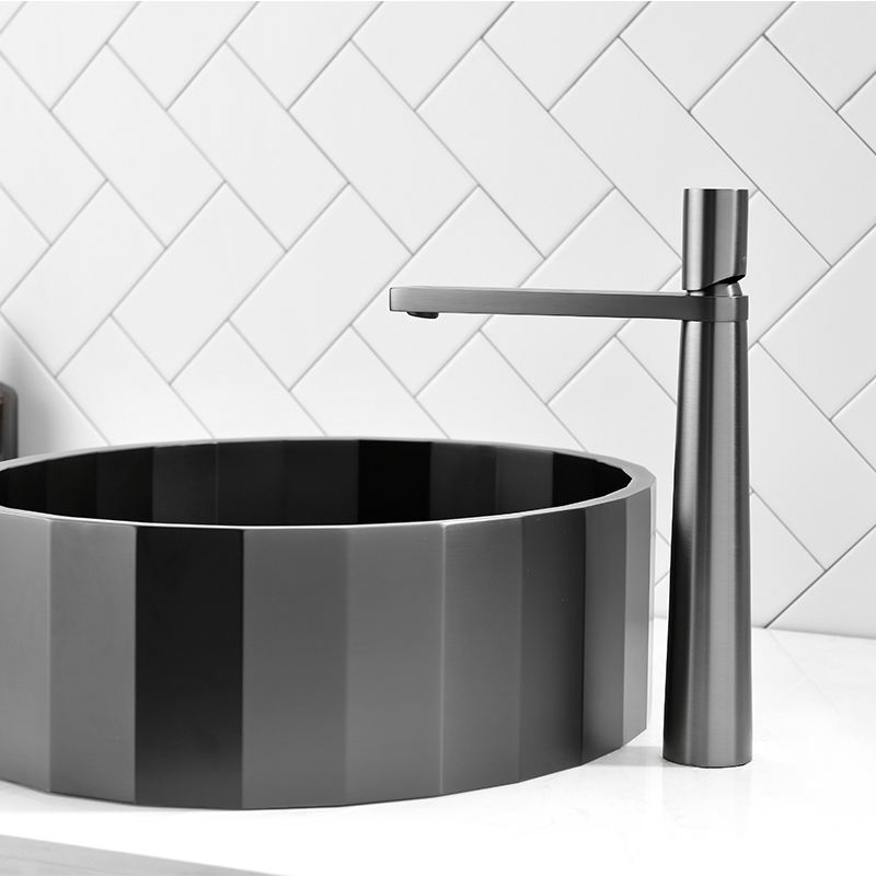 Modern Basin Mixer Faucet Single Lever Gun Metal Vanity Faucet Deck Mounted Tall Brass Bathroom Sink Faucet