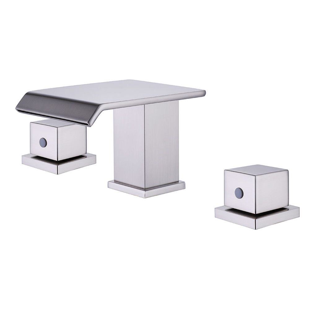 Modern Design 3-Hole Brass Waterfall Spout Deck Mounted Basin Mixers Ceramic Valve Core Gym Cupc Certified Brushed Nickel Faucet