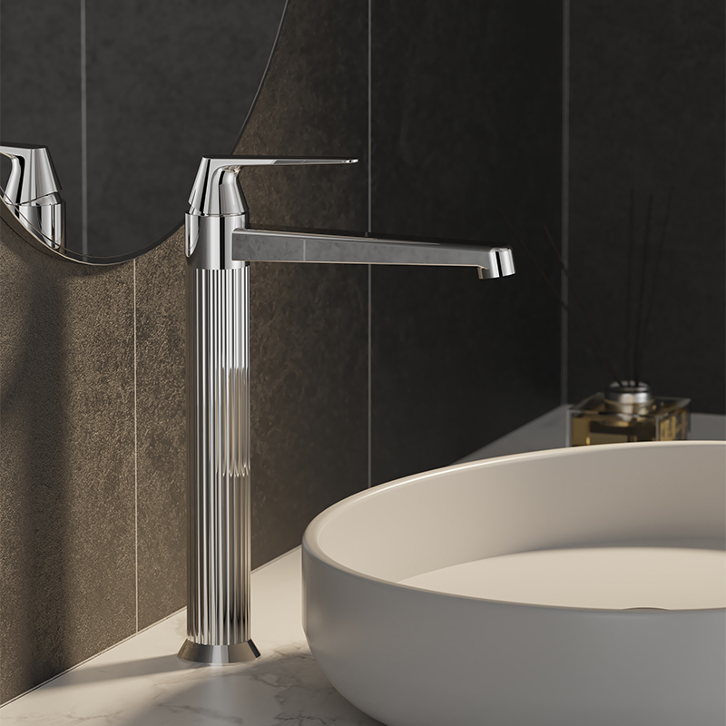 Modern Wash Basin Faucet Polished Chrome Single Handle Vanity Faucet Deck Mounted Brass Tall Bathroom Sink Faucet