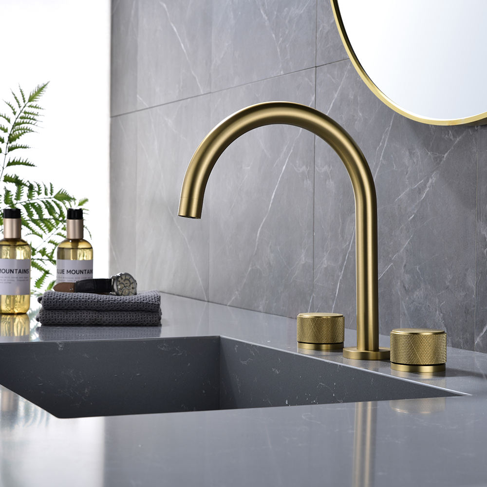 Modern Widespread Basin Mixer Faucet Brass Ceramic Value Brushed Gold Vanity Faucet 3 Holes Bathroom Sink Faucet