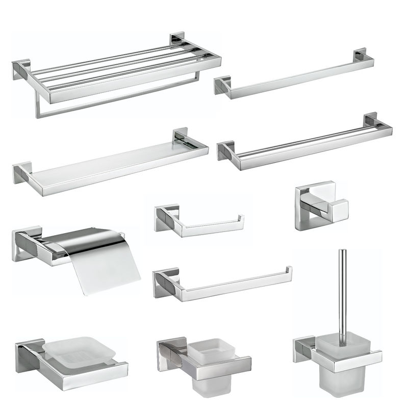 Polished Mirror Square Bathroom Hardware Shower Room Accessory Hotel Home Luxury Bath Toilet Fittings Set Towel Rack Bar Metal