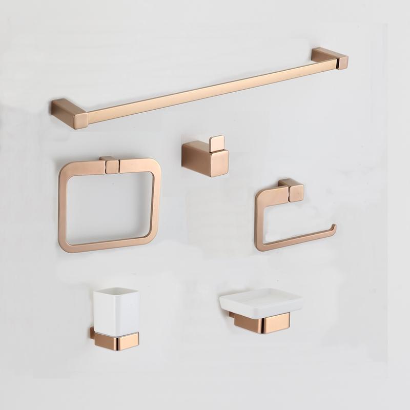 Rose Gold Hotel Wall Mounted Bathroom Hardware 6 Pcs China Bathroom Accessory Set