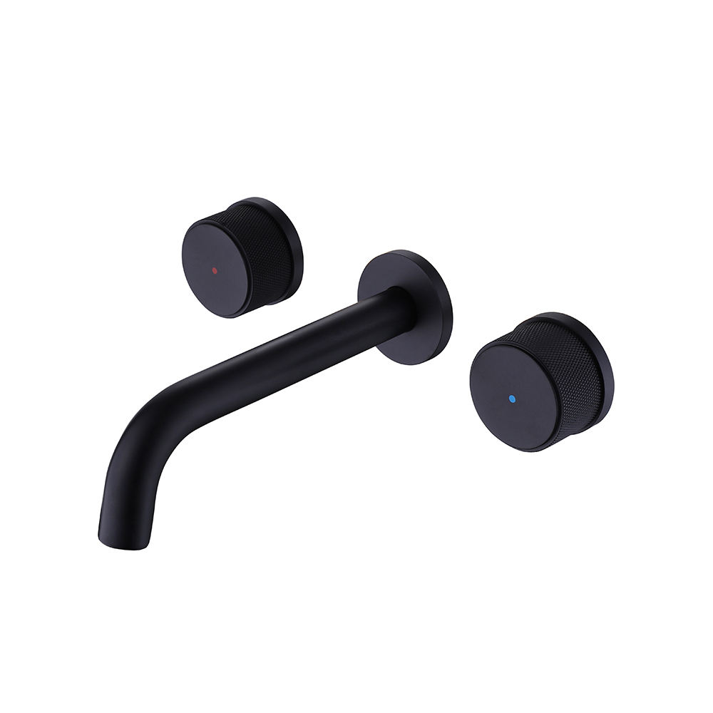 Solid Brass Wall Mounted Matt Black Basin Mixer Taps Modern Double Handle Hand Wash Tap