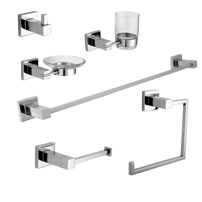 Square Design Hotel Project Stainless Steel 304 Modern Sanitary Fittings Bathroom Accessories Towel Rack Robe Hooks Set