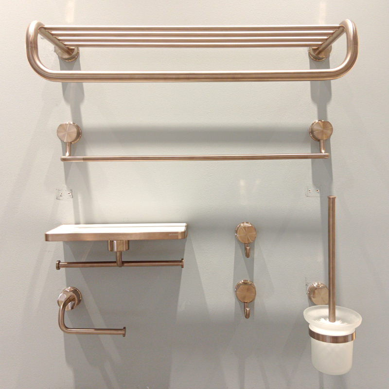 Stainless Steel and Zinc Alloy Wall Mounted Rose Gold Towel Rack Bathroom Accessories Set