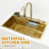 Stainless Steel Kitchen Sink Slot Waterfall Faucet Bionic Honeycomb Design Knife Holder Undermount