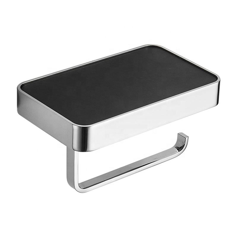 Wall Mount Chrome Toilet Paper and Phone Holder Rectangle Paper Towel Holder